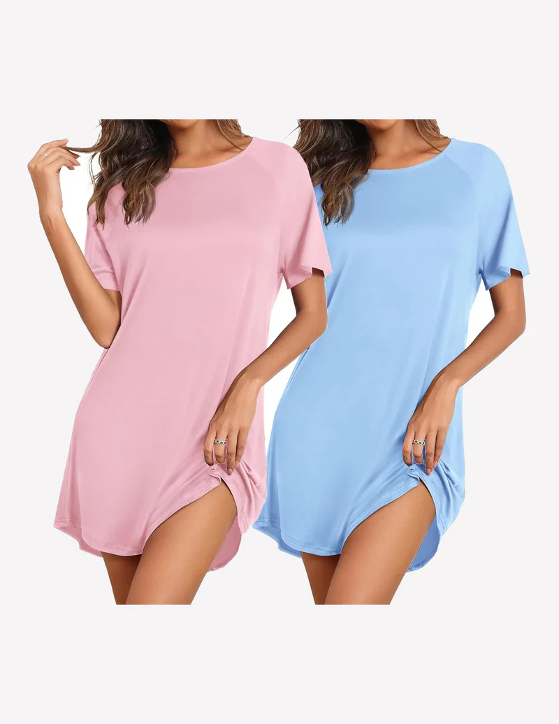 2 Pack Bamboo Viscose Sleep Shirts Short Sleeve Nightshirt